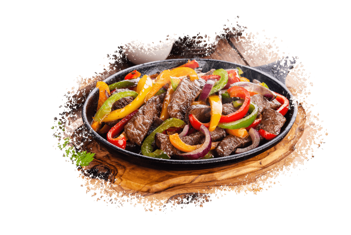 Estrellados con jamón sobre tortilla dorada con frijoles refritos, con salsa ranchera y plátano macho frito