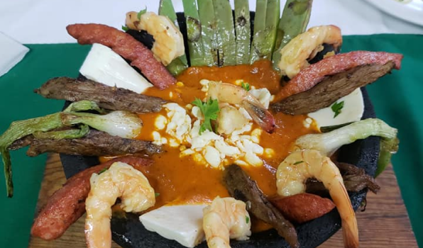 Chilaquiles con carne asada, una quesadilla y un chile relleno